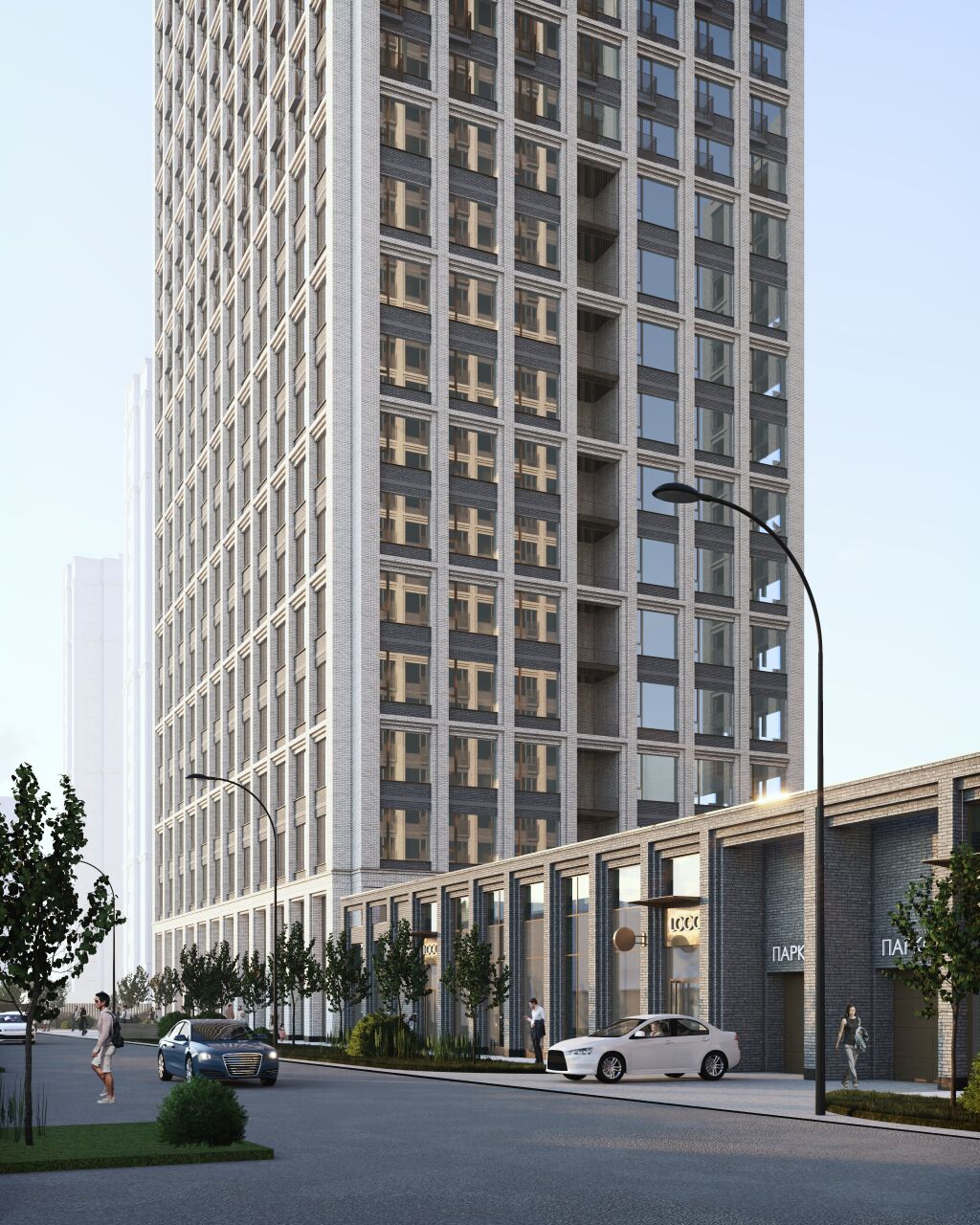 объединённых двухэтажной подземной автостоянкой с эксплуатируемым покрытием, на котором размещается внутридворовое пространство с благоустройством. Проектируемый объект имеет П-образную форму в плане с габаритными размерами по осям 70,27х117,59 м. Комплекс зданий расположен по периметру выделенного земельного частка, образуя полузамкнутый внутренний двор. Блок 1 (30 эт.) расположен на пересечении ул. Н. Островского и Семьи Шамшиных, Блок 2 расположен по ул. Писарева, два блока объединены двухэтажным пристроенным корпусом на пересечении ул. Писарева и Семьи Шамшиных. Блок 3 (30 эт.) расположен по ул. Н. Островского и объединяется с Блоком 1 одноэтажным пристроенным корпусом. В гостинице предусмотрена подземная автостоянка на 318 машиномест. На -1 этаже расположено 158 машиномест, на -2 этаже – 160 машиномест. Подземная автостоянка двухэтажная, с габаритами в осях 70,27х117,59 м. В автостоянку ведёт одна изолированная двухпутная рампа. Въезд с уровня земли предусмотрен со стороны ул. Николая Островского.