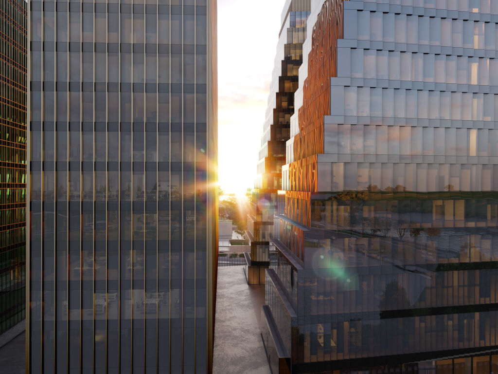 МФК prime-класса объединит два обособленных офисных блока: Л-образной формы площадью 58,8 тыс. кв. м и линейный площадью 26,2 тыс. кв. м. Концепция благоустройства территории предполагает организацию зеленой зоны с МАФ, клумбами, деревьями. Офисные помещения займут со 2 по 18 этаж. Первый этаж отводится под лобби с зоной ожидания, магазины, рестораны и кафе.